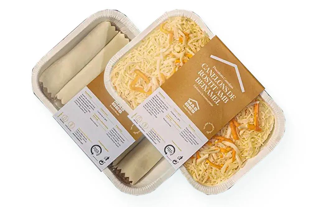 L’excedent de carn s’utilitza per a l’elaboració de canelons amb beixamel. Estan envasats en safates de 3, 6, i 10 i ja estan preparats de tal manera que només s’han de posar al forn per a consumir-los.